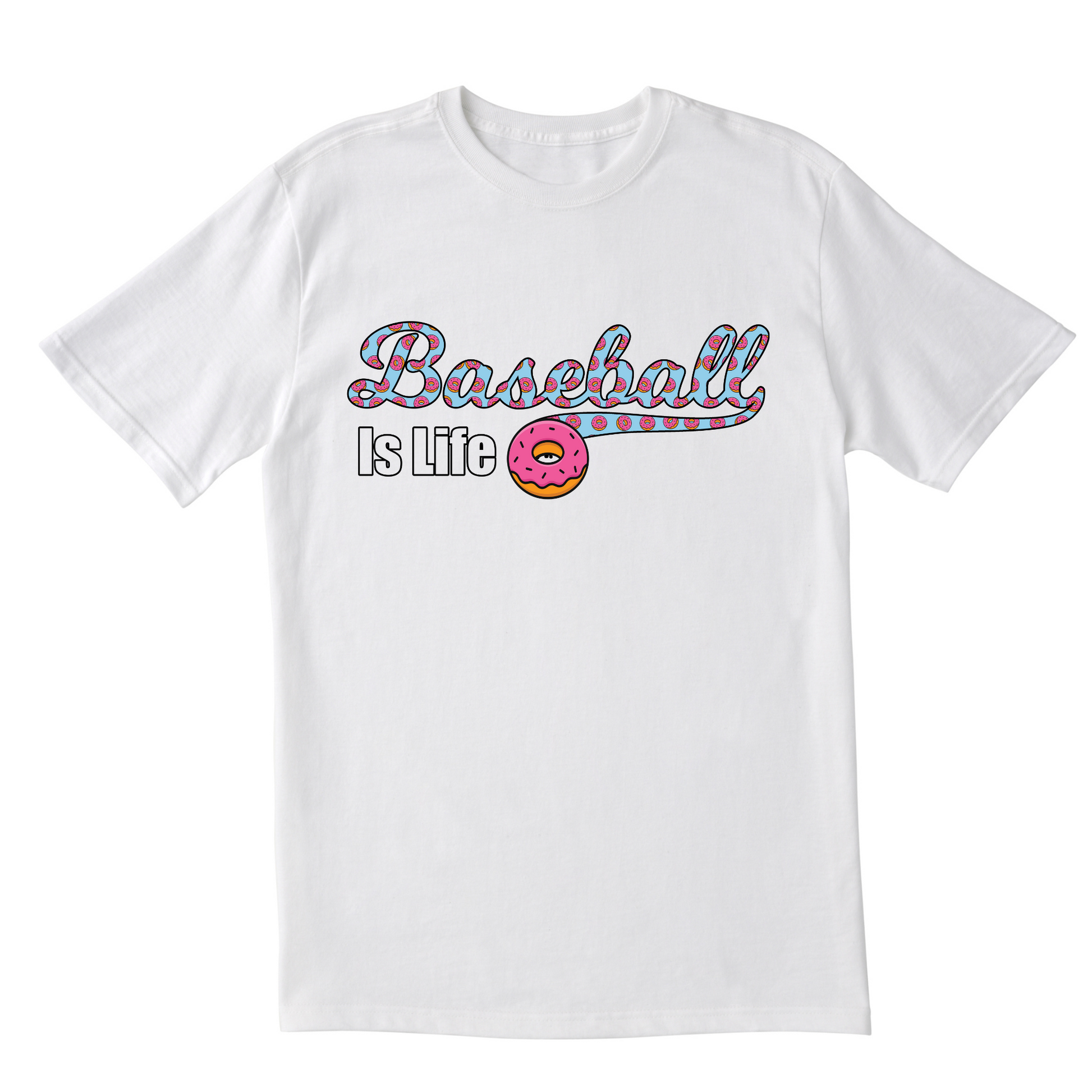 Score a home run with this quirky and playful t-shirt that combines the best of both worlds: baseball and donuts! Show your love for the game with this unique "BaseBall is Life Donut" t-shirt. Perfect for the ultimate fan or anyone with a sweet tooth. (Only 49 words, but it's a home run!)