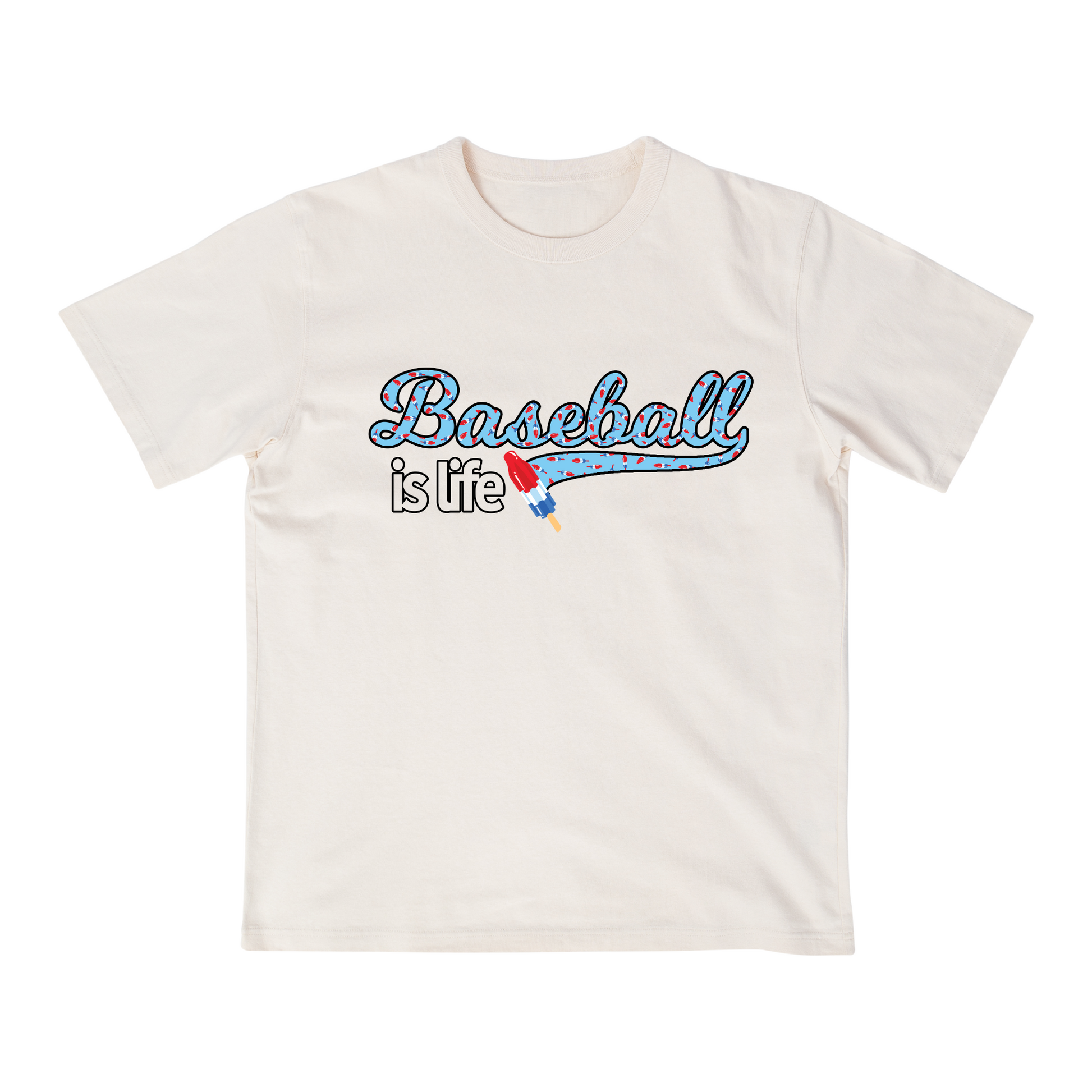 This playful t-shirt declares your love for baseball and summer treats with its "Baseball Is Life Bomb Pop" design. Show off your quirky side while staying comfortable in this fun and unique shirt. Perfect for any baseball fan!