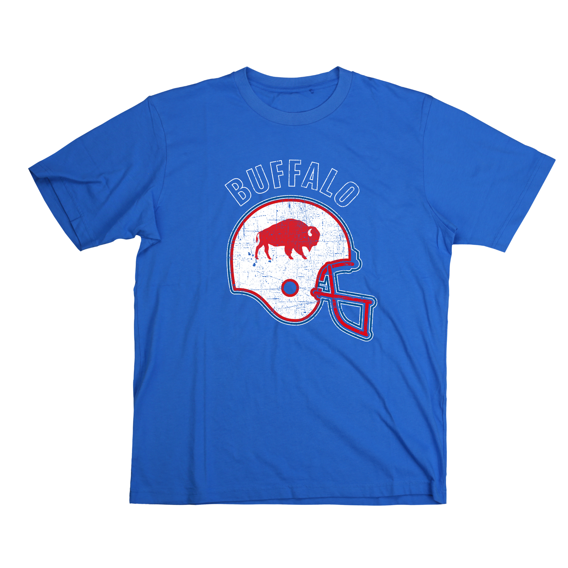 Get ready to support the Buffalo Bills in style with our Distressed Buffalo Helmet T-shirt! Featuring a unique buffalo football helmet design, this shirt is a must-have for any fan. Show off your team spirit and stand out from the crowd! (Go Bills!)