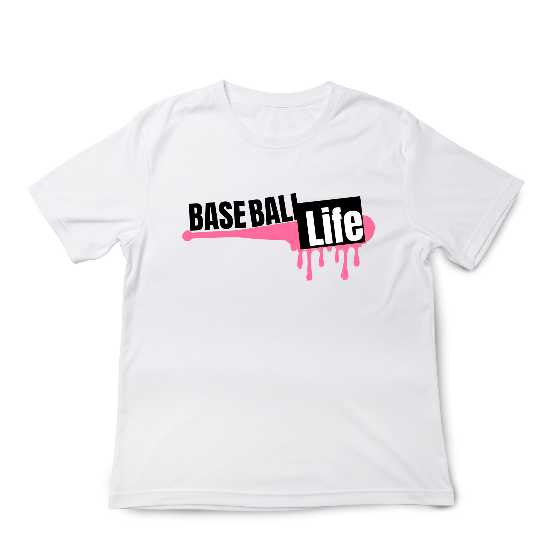 Show off your love for baseball and life with our White & Pink Drip Baseball Life Bat T-shirt! This unique t-shirt features a fun and quirky design that will make you stand out on and off the field. The perfect addition to any baseball fan's wardrobe.