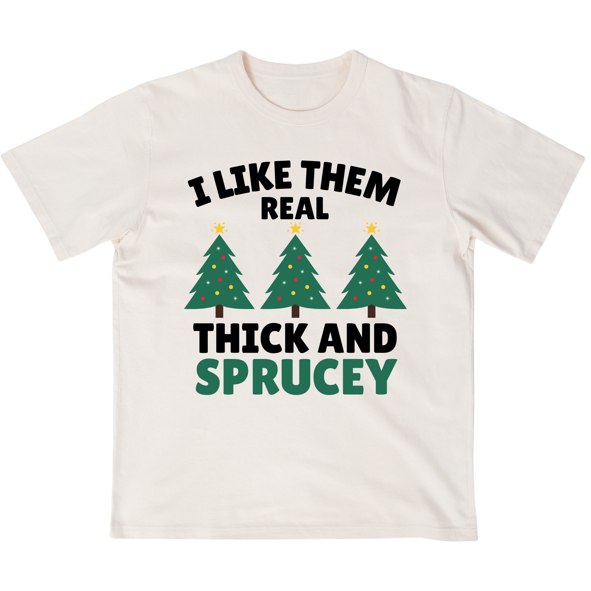 Get ready to sleigh in style this holiday season with our "I like them real thick and sprucey" Christmas Tree T-shirt! Not only is it perfect for any Christmas party, but it's also made with high-quality materials for ultimate comfort. Show off your love for the holidays with this fun, quirky and festive tee.