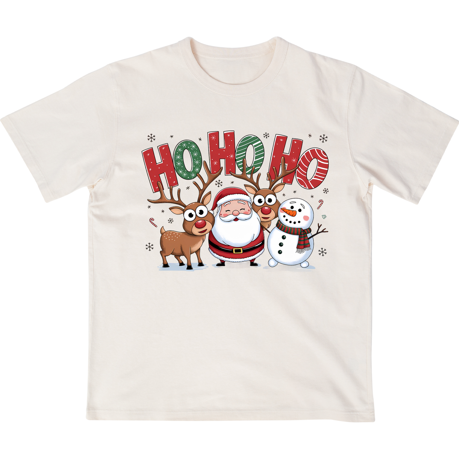 Celebrate the holidays with our Ho ho ho Santa, Reindeer, and Snowman t-shirt! Spread cheer and joy while rocking this quirky and playful design. Perfect for holiday parties or as a unique gift.